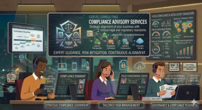 Coeus Consulting provides expert compliance advisory services to align your business with critical legal and regulatory standards. We ensure seamless adherence to frameworks like SOC2, HIPAA, and GDPR, mitigating risk and fortifying your industry reputation.