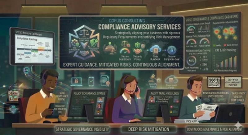 For small to medium businesses, managing costs is paramount. Coeus Consulting embeds expert compliance advisory within our IT and cybersecurity managed services. This unified approach lowers operational costs by streamlining processes and proactively mitigating risks, ensuring your business stays secure, compliant, and budget-conscious without juggling multiple vendors.